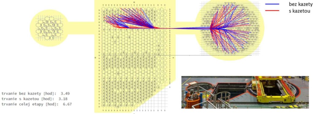 Zaujímavá bola aj práca s dátami zo záznamov zariadenia na zavážanie paliva na 3. bloku Mochoviec, kde som pozorovala, ako sa pohybuje zavážací stroj pri výmene paliva. Monitorovali sme pohyby zavážacieho stroja bez kazety aj s kazetou. Zisťovali sme, či sa tu optimalizáciou manévrovania dá ušetriť čas alebo sme sa pýtali, prečo mal v danú dobu stroj pauzu a podobne.