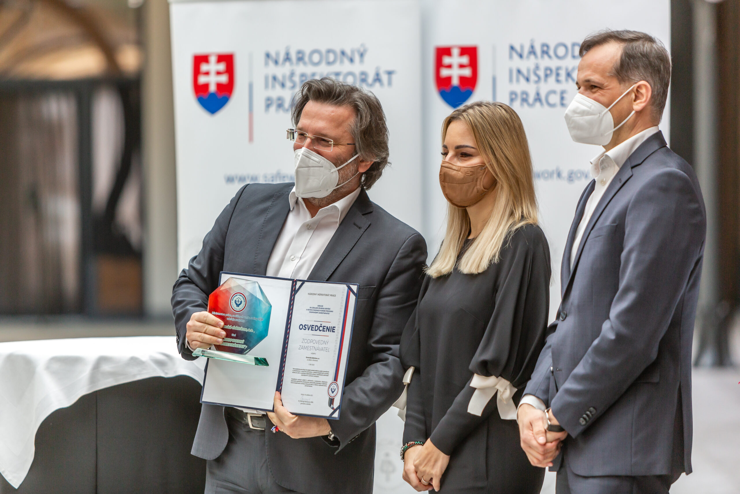 V Košiciach odovzdávali i certifikáty Bezpečný podnik, ktorý sme s plaketou od Národného inšpektorátu práce a Ministerstva práce, sociálnych vecí a rodiny SR prevzali ešte minulý rok priamo na našom riaditeľstve. Presvedčenie, že ocenenia Bezpečný podnik aj Zodpovedný zamestnávateľ sú v dobrých rukách vyjadril aj riaditeľ odboru ochrany práce Martin Neštický. „Spokojný zamestnanec – rovná sa spokojný zamestnávateľ,“ uviedol a dodal, že „programy Bezpečný podnik a Zodpovedný zamestnávateľ sú dôležitou súčasťou budovania kultúry bezpečnosti a kultúry zamestnávania a okrem iného sú aj istou formou prevencie v oblasti bezpečnosti a ochrany zdravia pri práci, a preto majú plnú podporu ministerstva práce, sociálnych vecí a rodiny.“